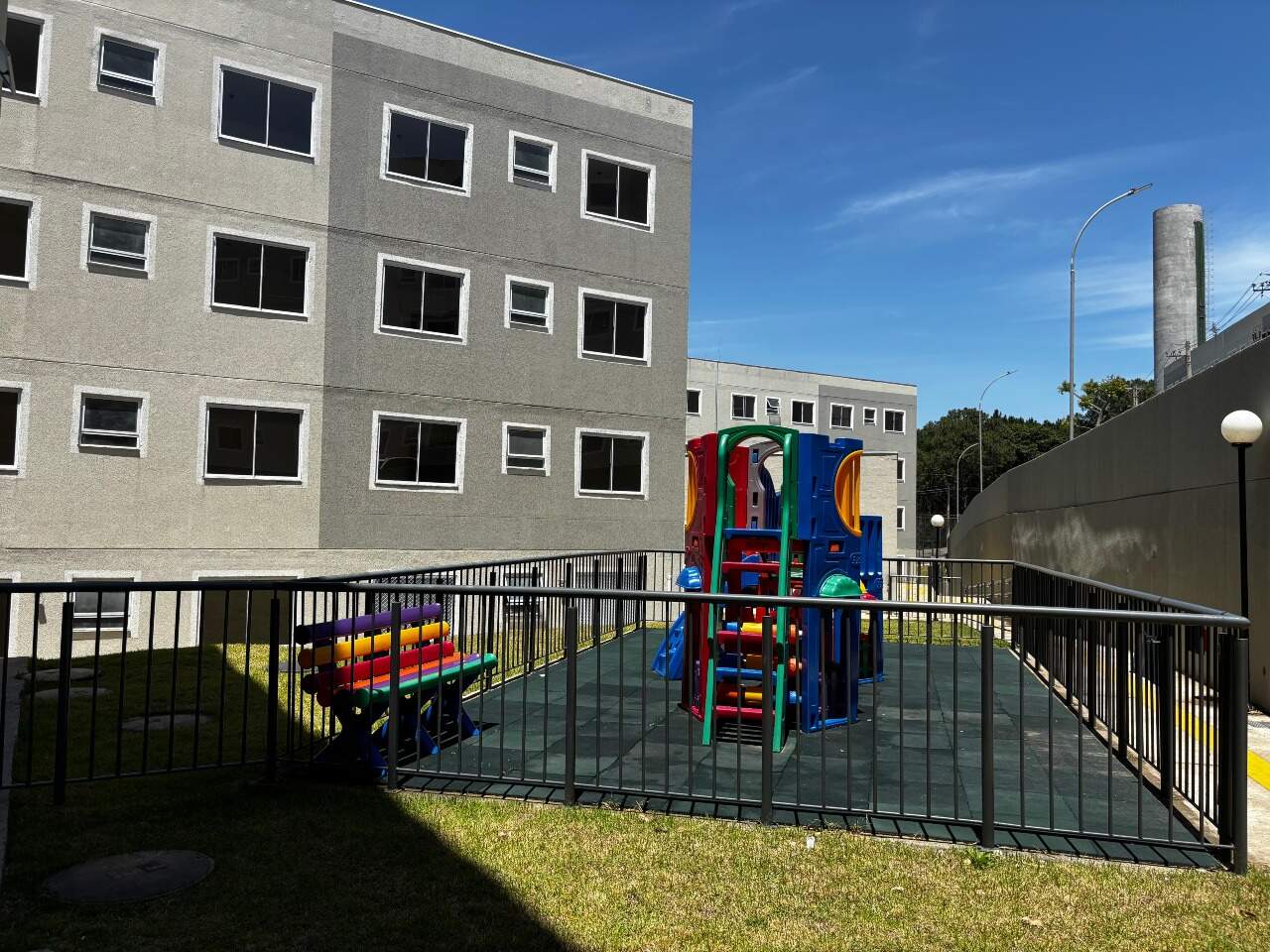 Condomínio equipado com piscina adulto e infantil, quiosque com churrasqueira, salão de festas, playground.