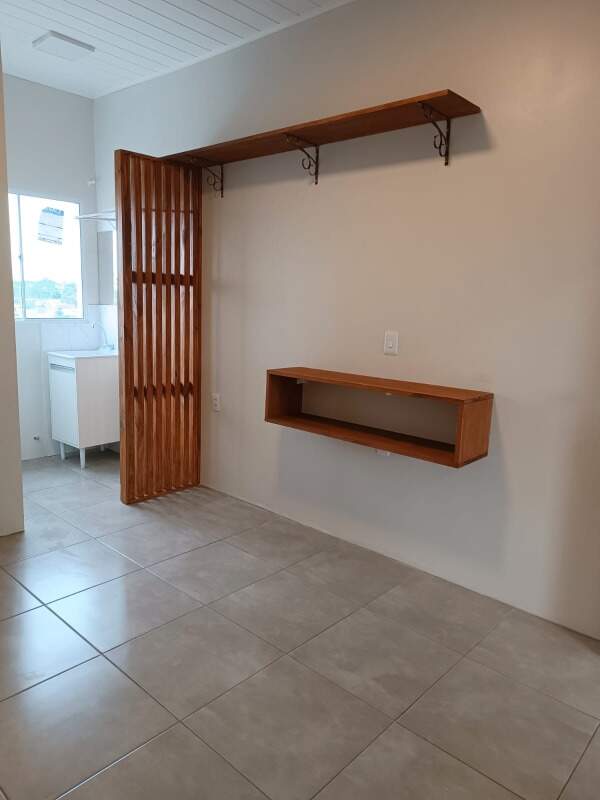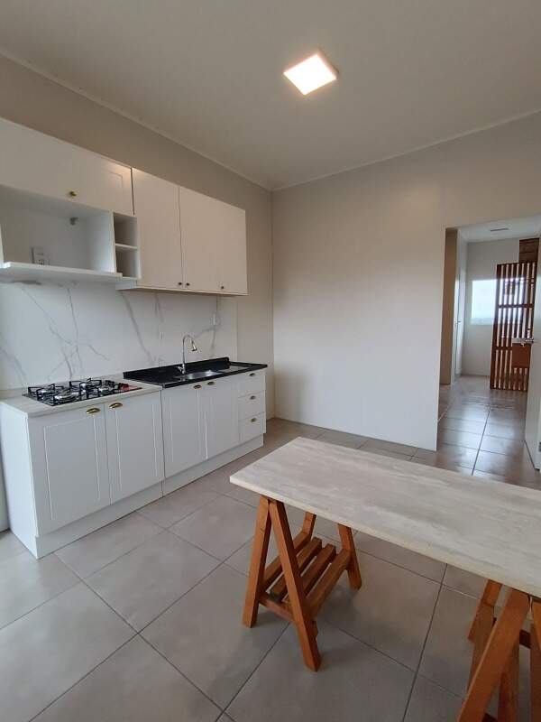 Apartamento semi mobiliado as margens da RS040, em frente ao Supermercado Orso. Possui sala e cozinha conjugadas com móveis planejados, com cooktop e mesa . 1 suíte.