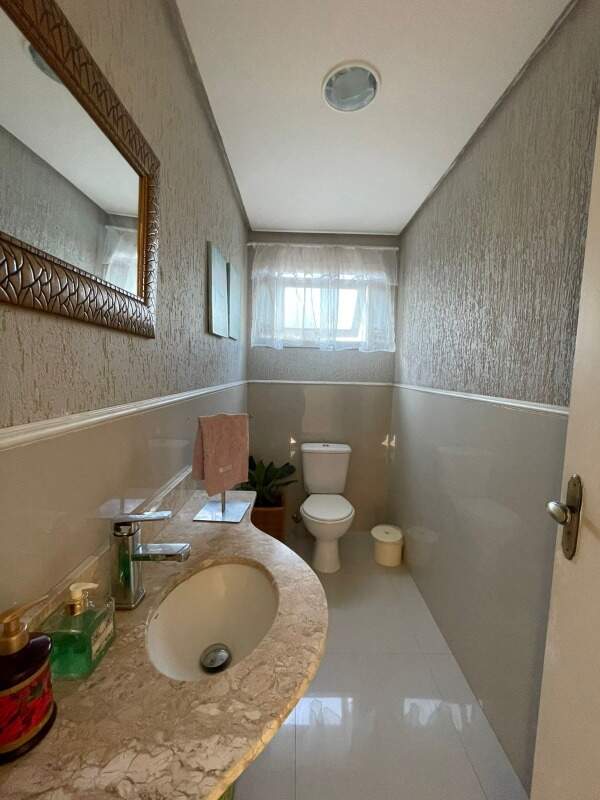 Ainda neste pavimento, temos um lavabo e uma sala íntima com painel de tv, podendo ser utilizada como um belo, iluminado e espaçoso escritório.