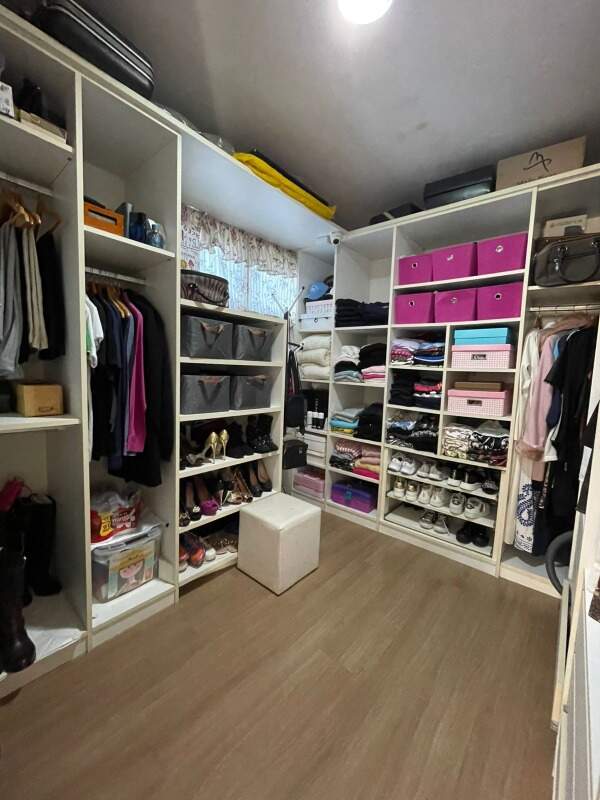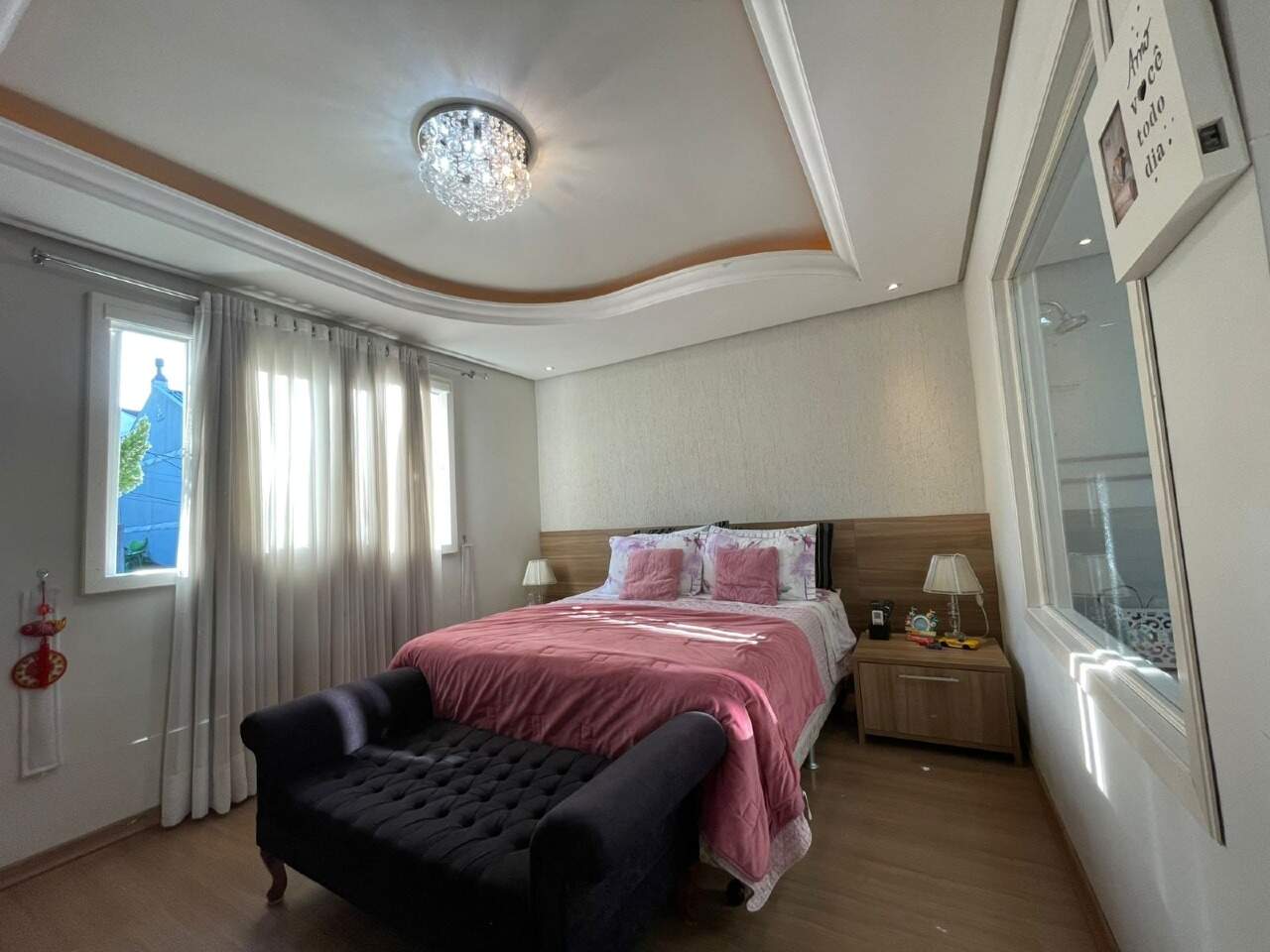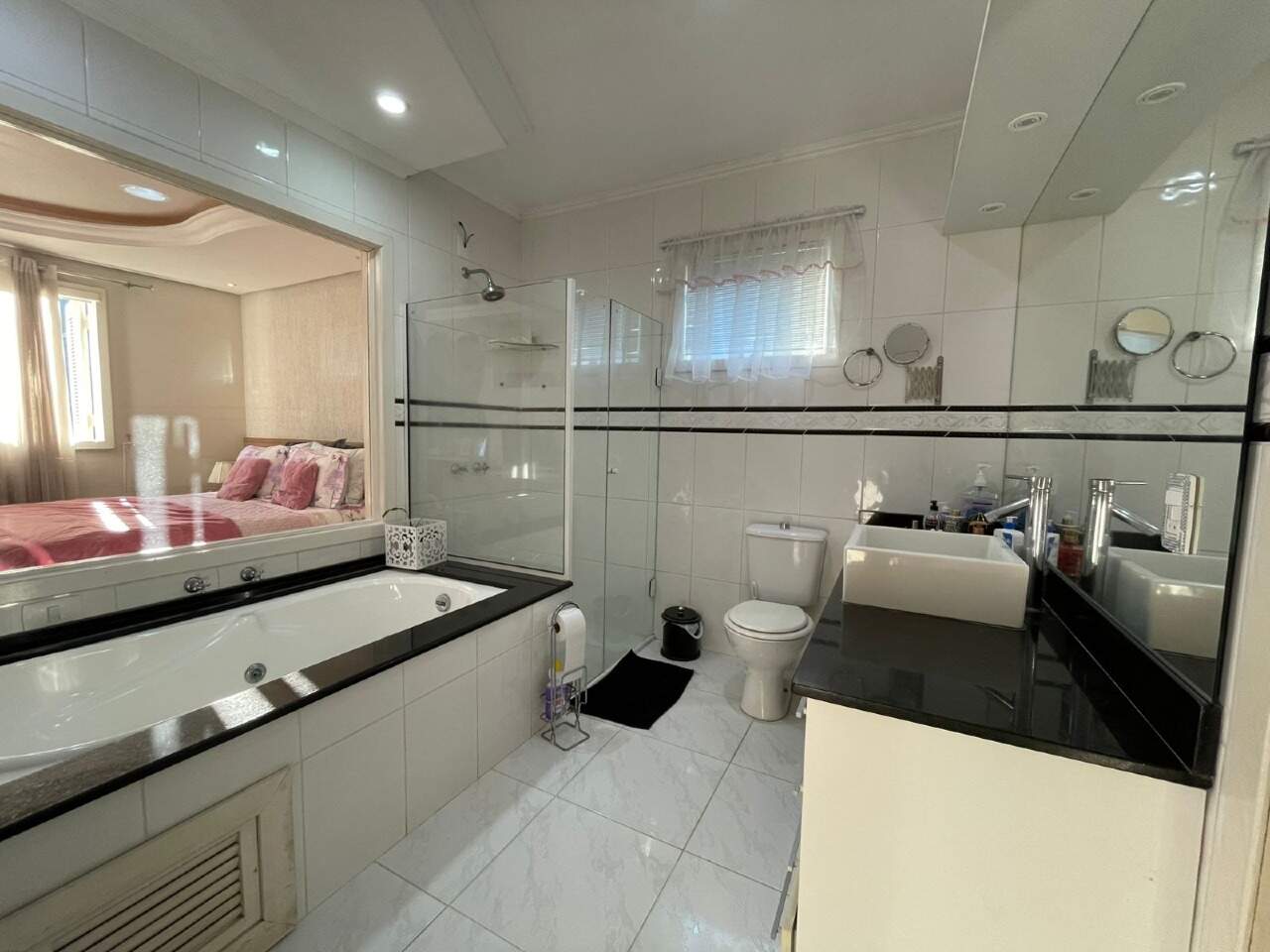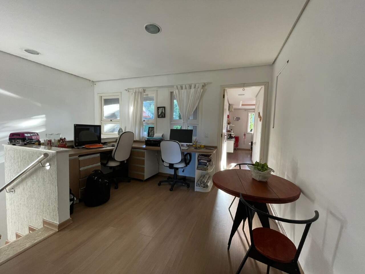 No andar superior somos recebidos por um living utilizado hoje como escritório, temos acesso a 2 dormitórios com móveis planejados, lustres e ares condicionados. Nesse mesmo andar temos uma suíte master com criados mudo fixados a cabeceira, ar condicionado, um amplo closet e um banheiro com hidromassagem. Todos ambientes com piso laminado.