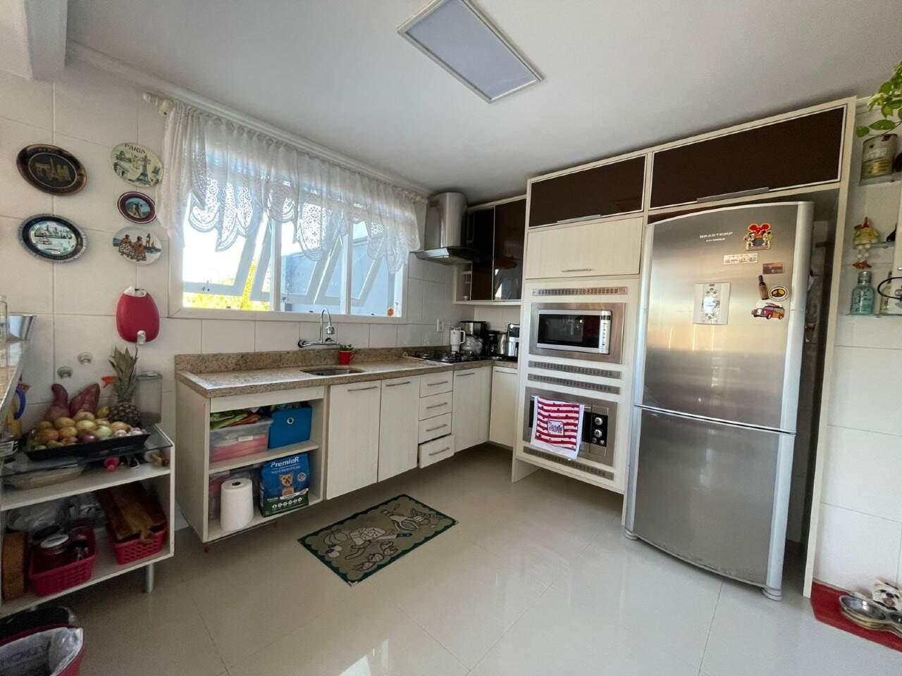Junto a garagem para quatro veículos, temos uma ampla área gourmet equipada com móveis planejados, churrasqueira, freezer, geladeira, ilha com fogão de indução, forno elétrico e micro-ondas embutidos. No mesmo pavimento esta ainda a lavanderia equipada com armários e máquina de secar e máquina de lavar ambas Brastemp, um banheiro completo e um depósito.