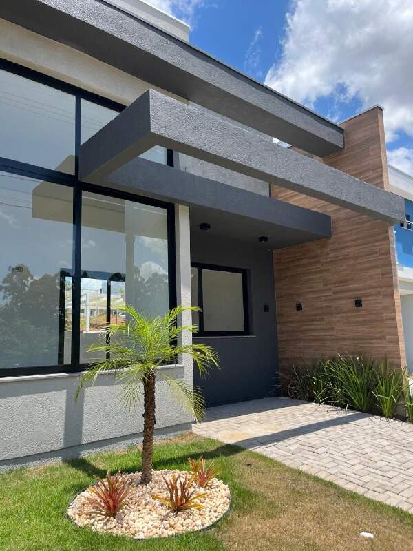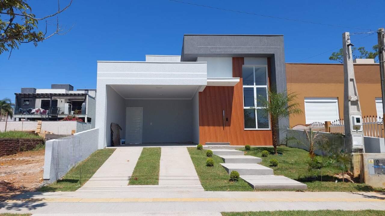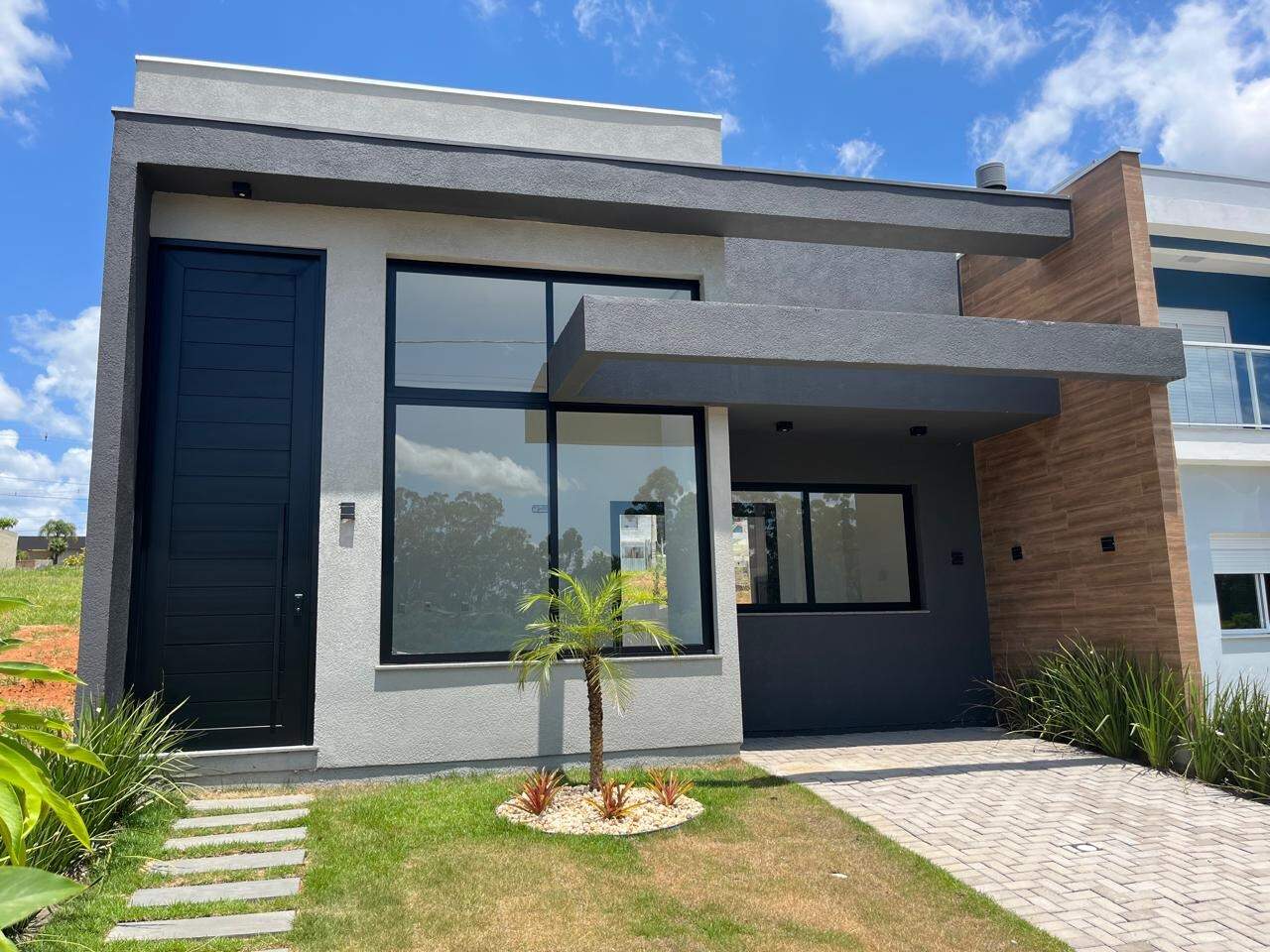 A REALIZA apresenta excelente casa térrea no residencial Vivare, em Viamão, com 96,07m² de área construída e 209m² de terreno plano. Com fachada contemporânea e volumes em concreto, trata-se de um projeto privilegiado por muita luz natural, excelente orientação solar e ventilação, além de espaços amplos com pé-direito de 4,50m na área social.