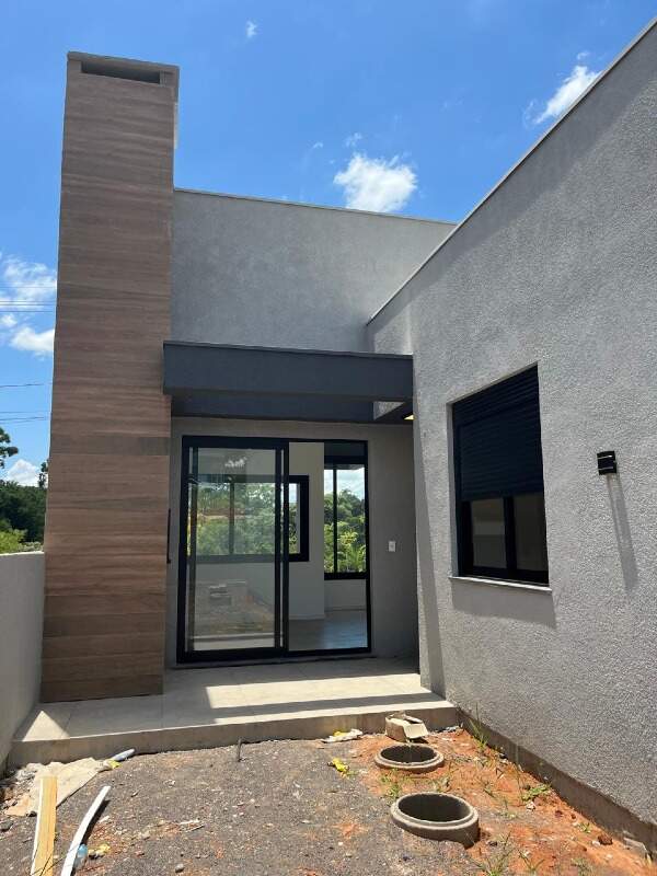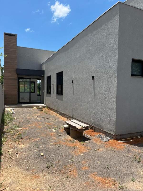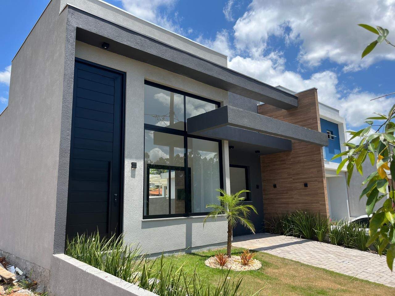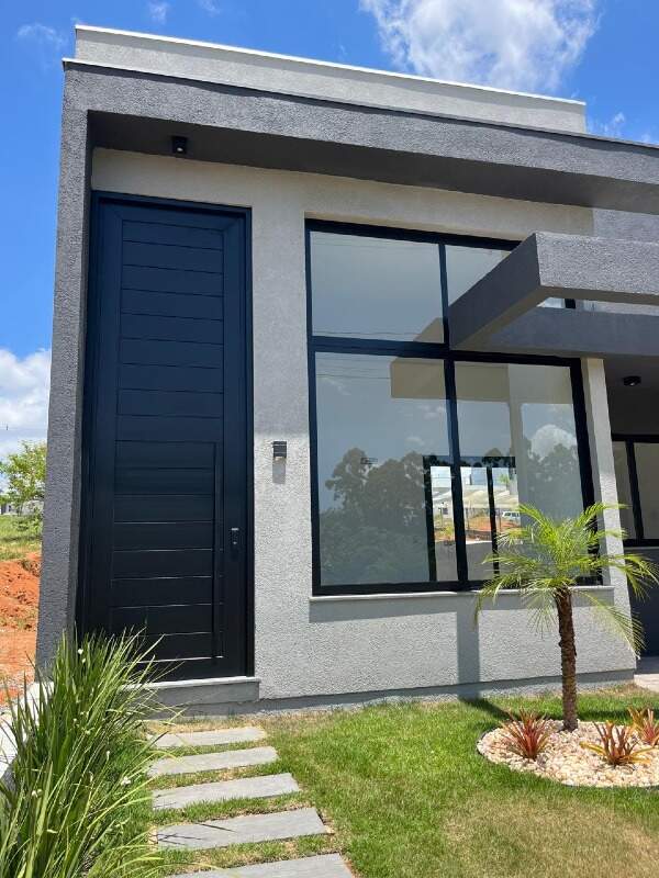 Com uma planta funcional e bem distribuída, oferece salas de estar, jantar e cozinha integrada com móveis modulados na cor azul petróleo e acabamento de alto padrão. São três dormitórios, sendo uma suíte master, banheiros com móveis planejados e box de vidro, área gourmet coberta com churrasqueira, pátio com espaço para piscina, porcelanato nos ambientes sociais, piso vinílico nos quartos, espera para splits em toda residência, esquadrias pretas com persianas em alumínio, depósito de gás para P45, porta principal com fechadura eletrônica e senha e terreno com muros nas divisas.