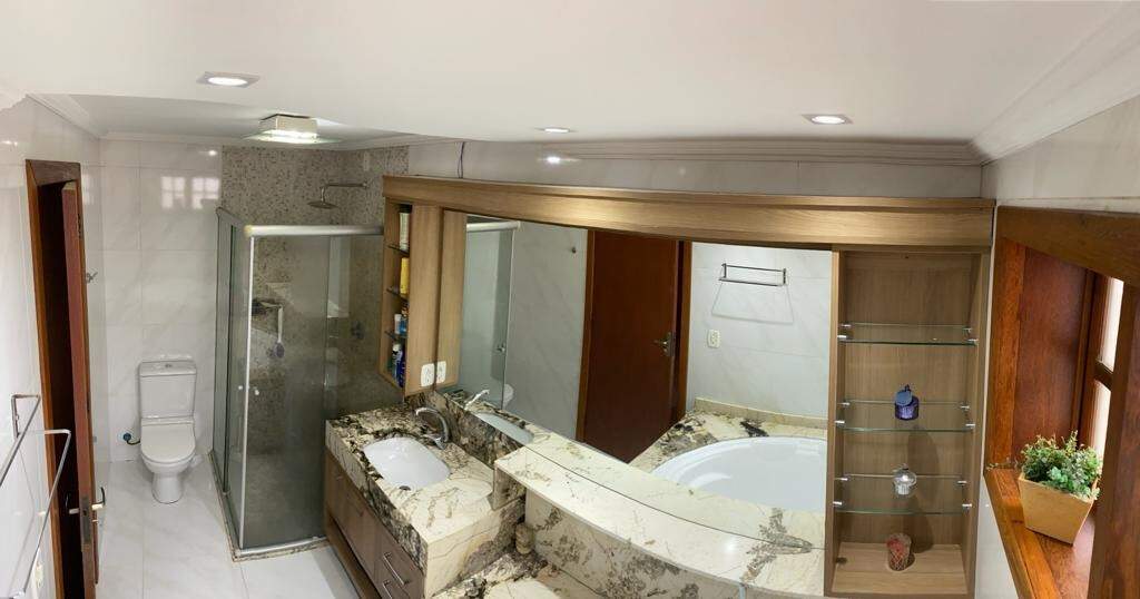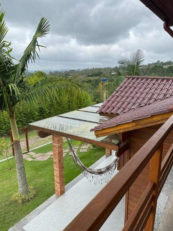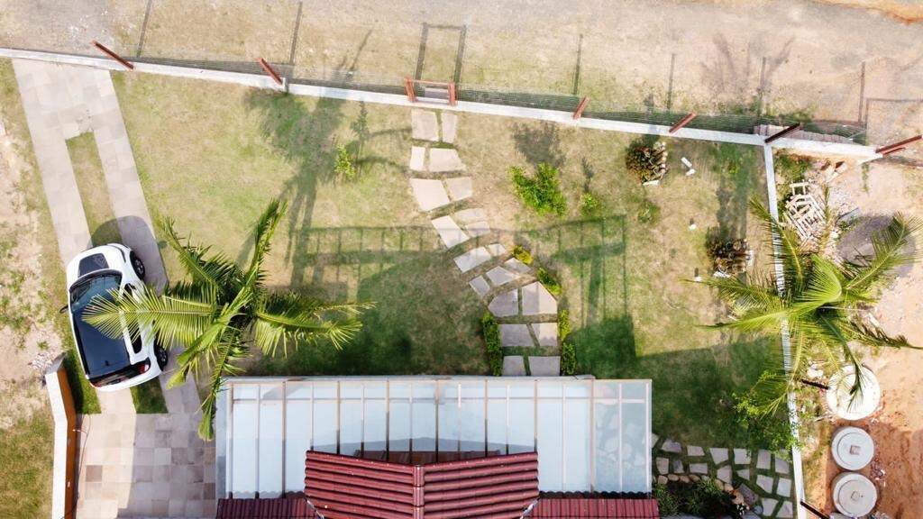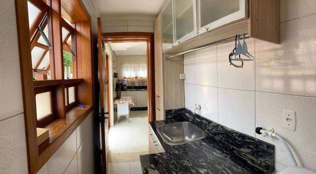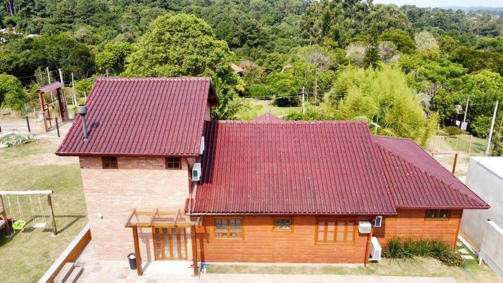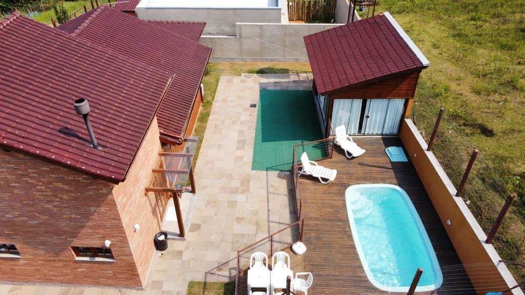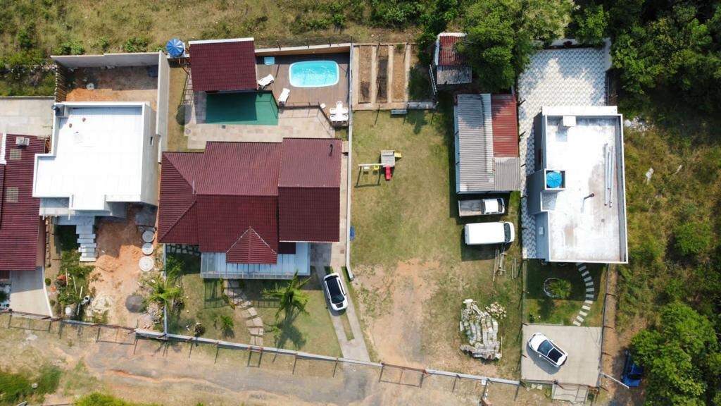 No pátio, um quiosque com piscina oferece lazer completo e momentos especiais de convivência. O terreno, com 1.052m², garante privacidade, contato direto com a natureza e muito espaço para aproveitar.