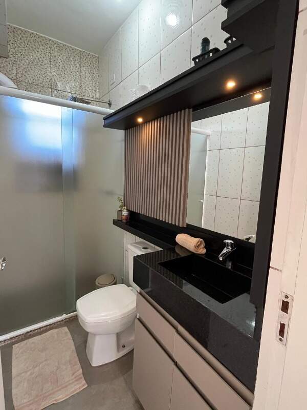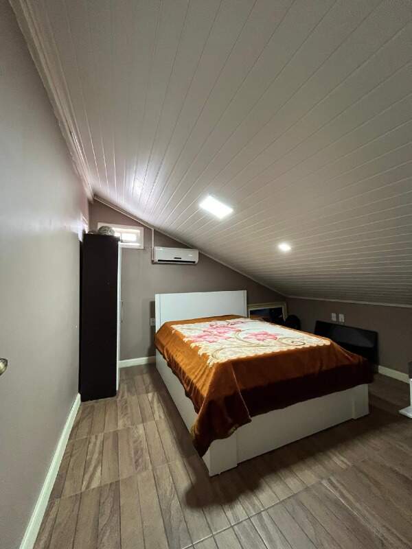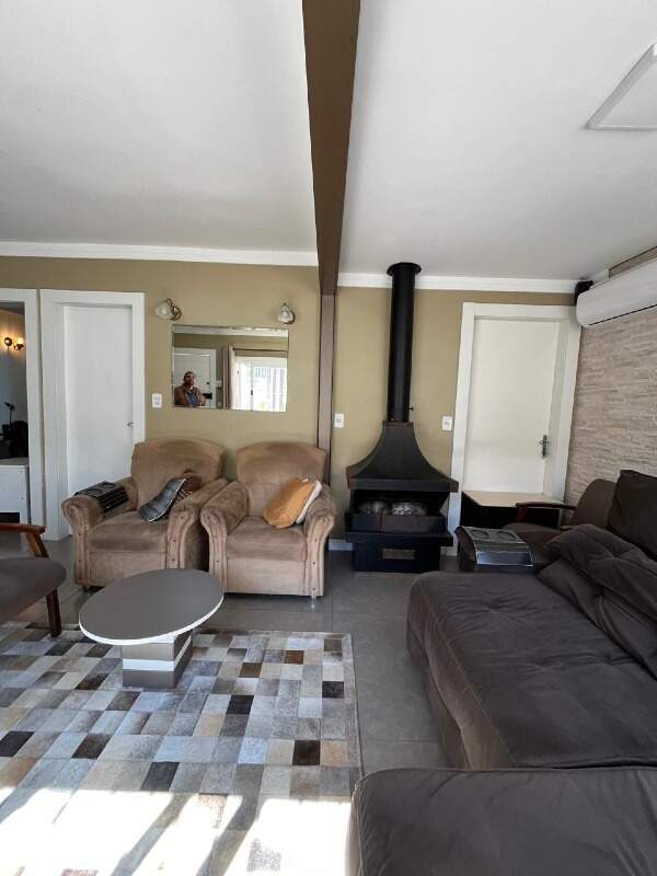 Instalação de aquecimento a gás atendendo cozinha e banheiros, ar condicionado na sala, na suíte e em um dos quartos, churrasqueira, lareira, garagem coberta para um carro.