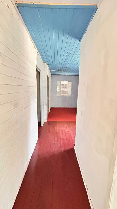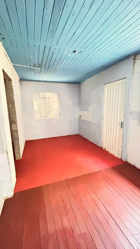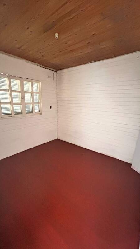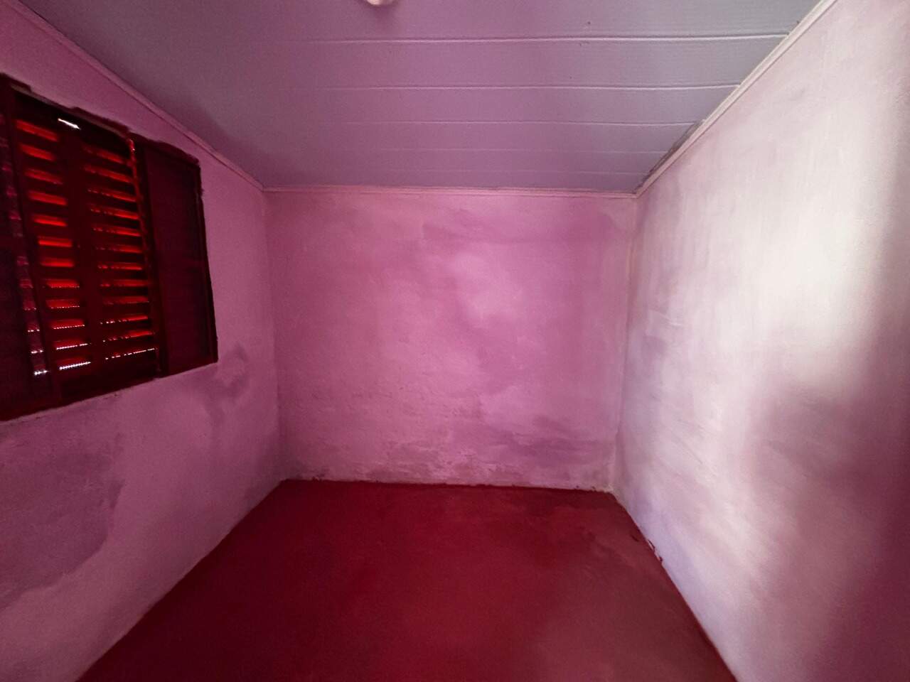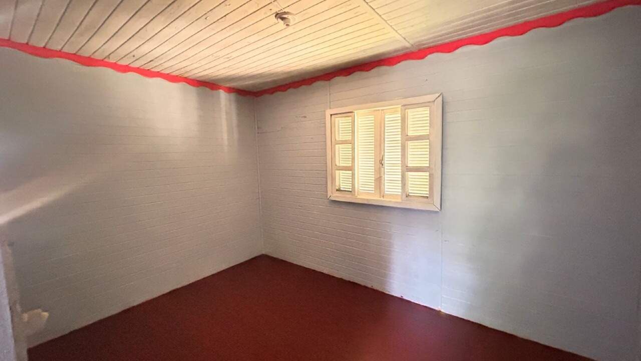 Casa de madeira com 2 dormitórios, sala, cozinha e banheiro.