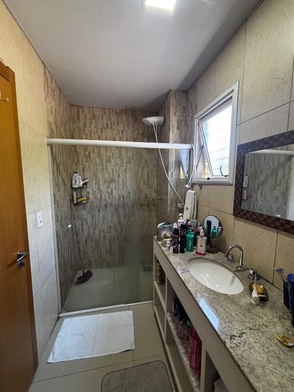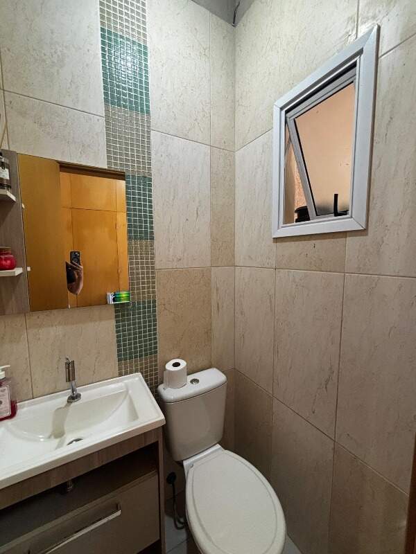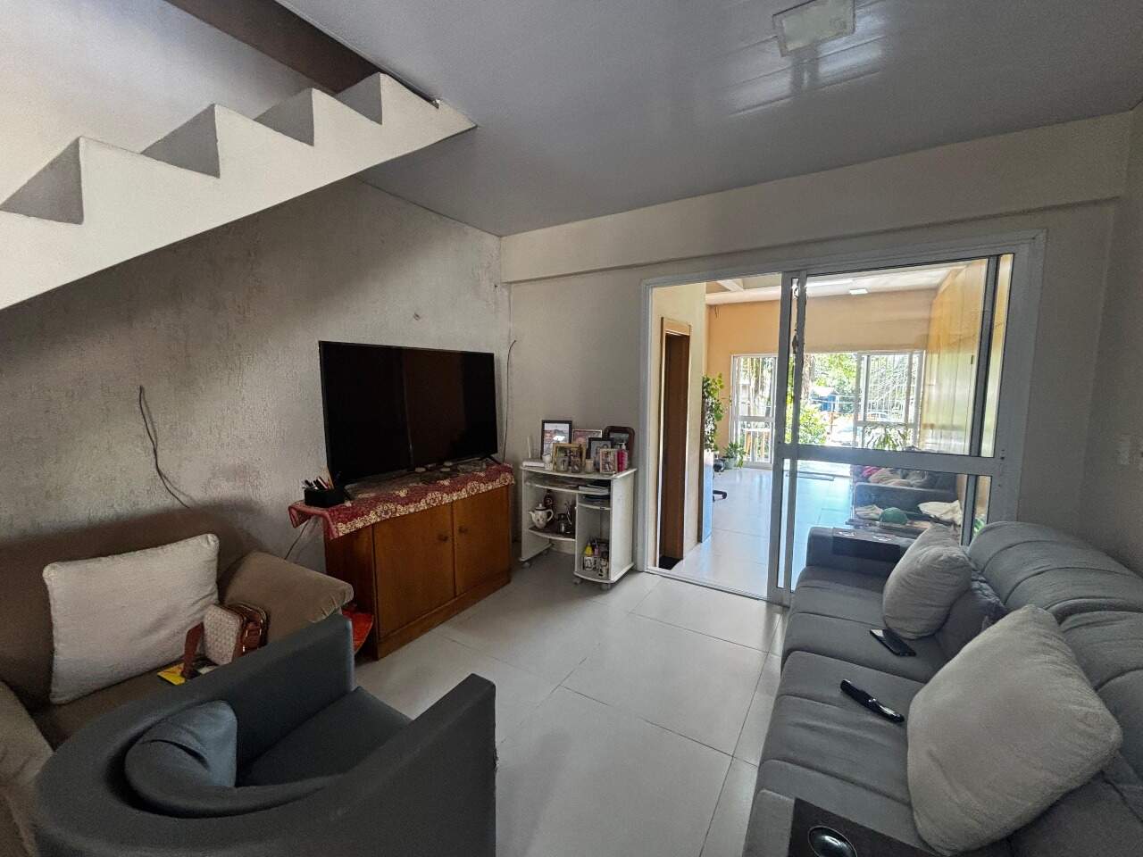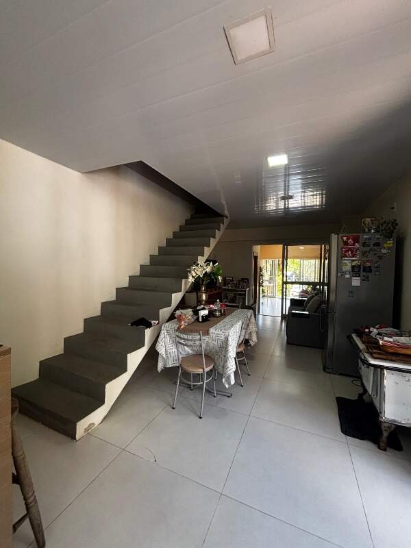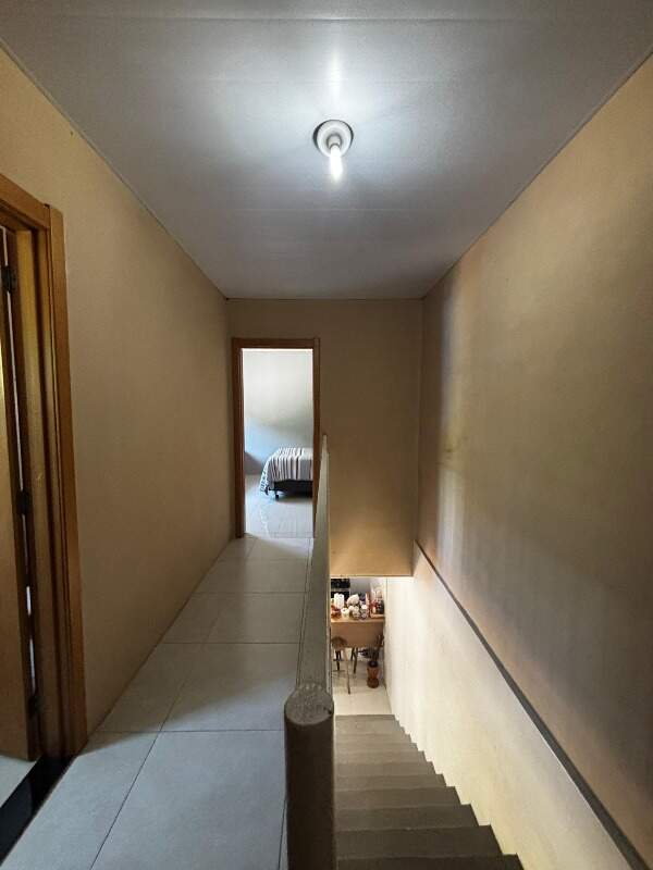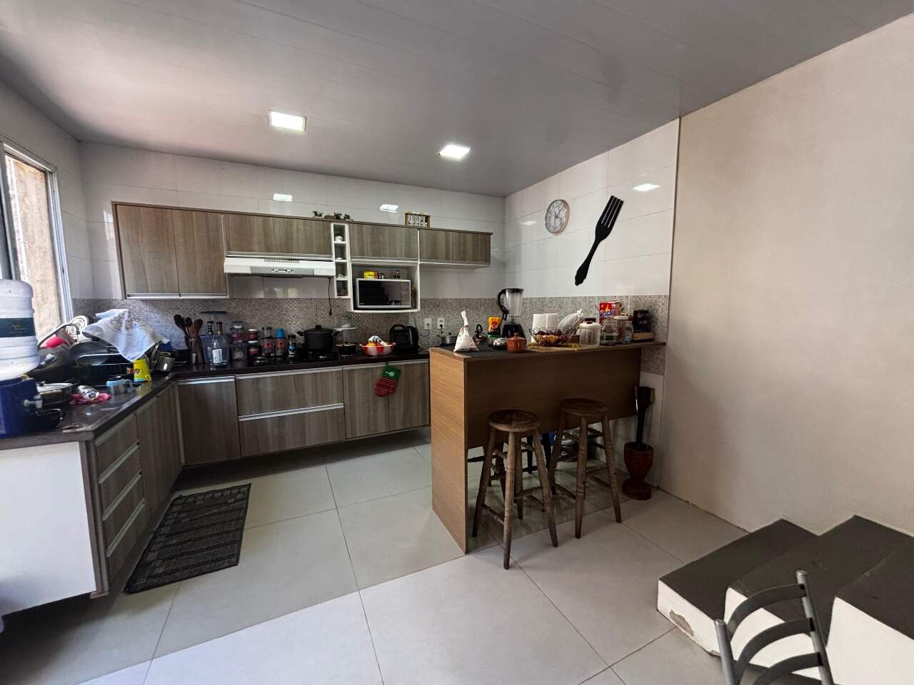 Sobrado com 3 amplos dormitórios, banheiro social no andar superior, no andar inferior possui ampla cozinha com móveis planejados, sala de estar, lavabo e churrasqueira.