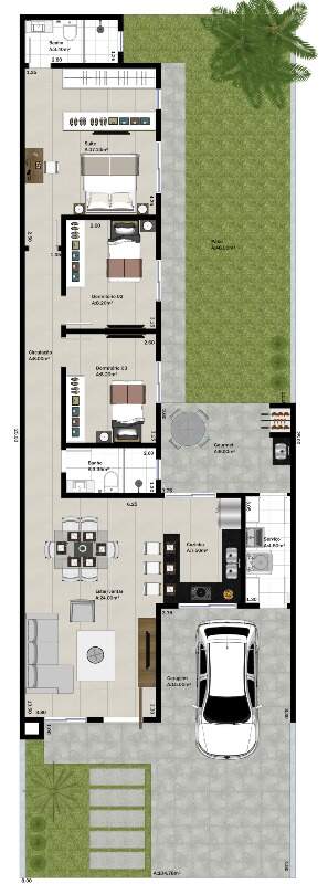 Este imóvel conta com três quartos, incluindo uma suíte com closet para mais privacidade. A sala e a cozinha são integradas, proporcionando um ambiente amplo e perfeito para o convívio familiar. A área gourmet com churrasqueira é ideal para receber amigos e familiares, enquanto o pátio espaçoso já possui espera para piscina. Além disso, a lavanderia é funcional e bem planejada. O imóvel também dispõe de duas vagas de garagem, sendo uma coberta.