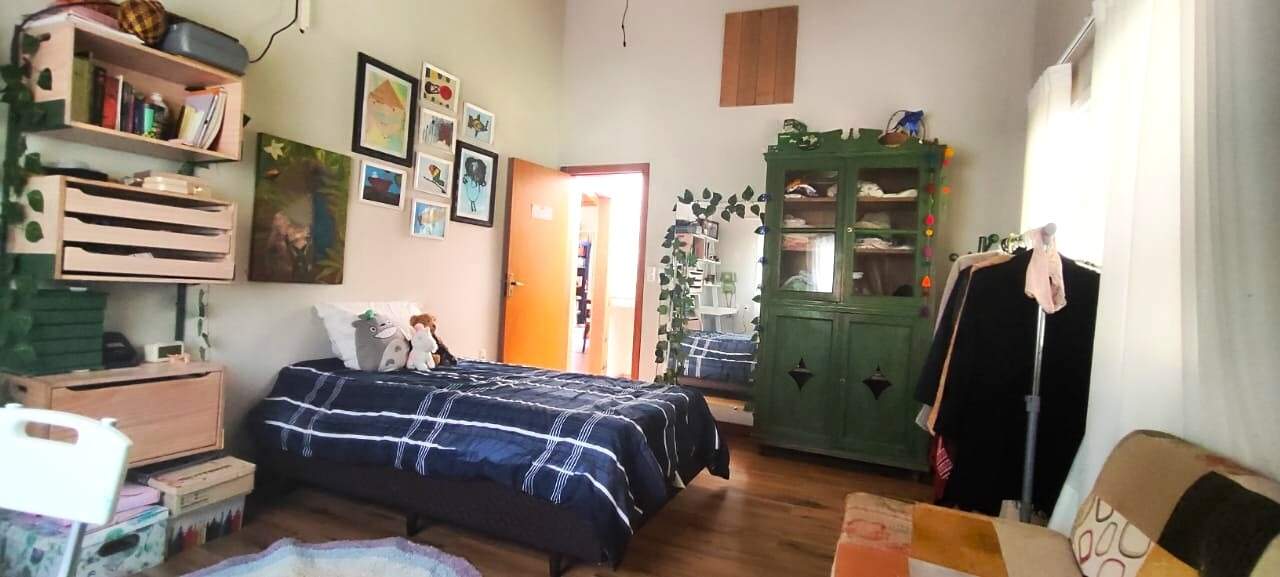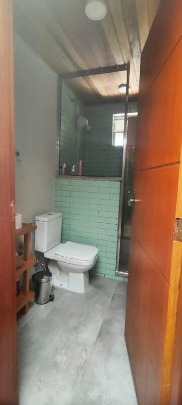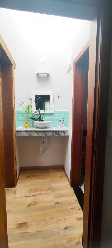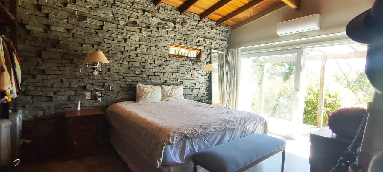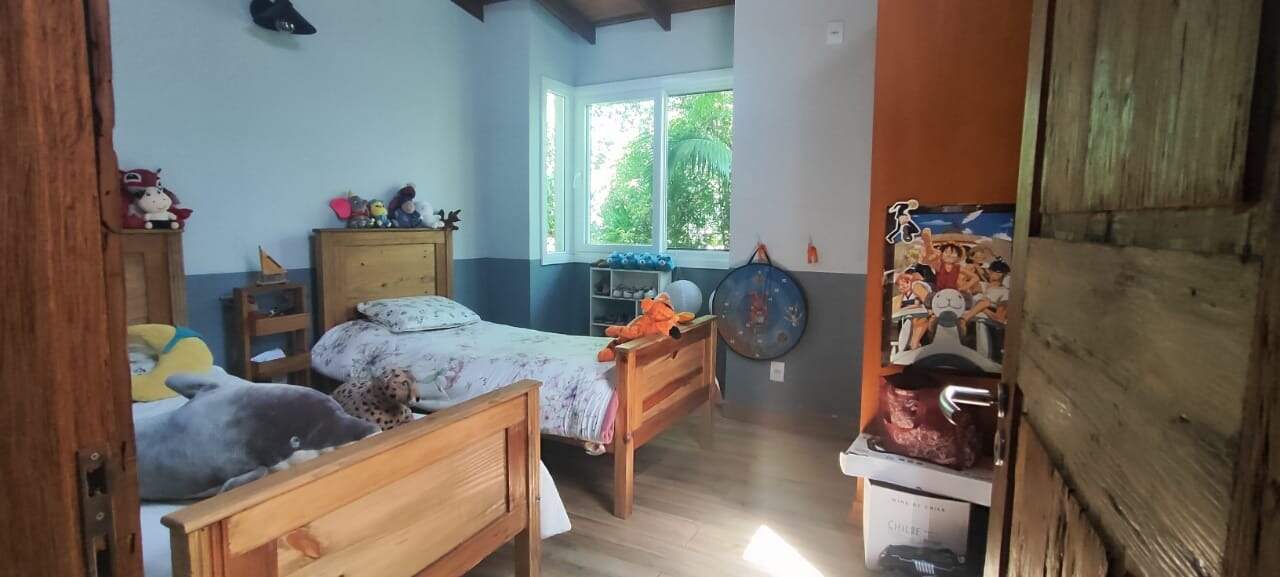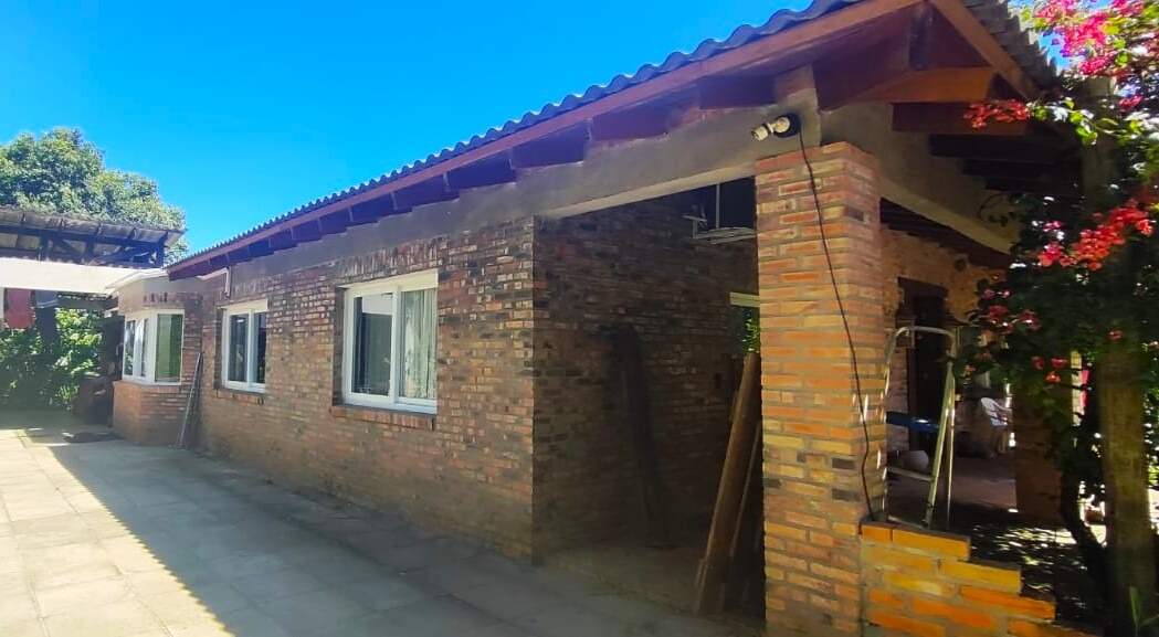 com banheiro americano, living com pé direito duplo, lareira , janelas do chão ao teto permitindo ventilação, iluminação e acesso para a área da piscina, o living é integrado a ampla cozinha gourmet com ilha, fogão campeiro e fogão com torneira de água quente. Possui Lavanderia, churrasqueira, linda área externa com piscina, varanda, pátio gramado e diversas plantas ornamentais e árvores frutíferas. Uma Casa de Campo perfeita para quem quer desfrutar de momentos com a família e amigos , localizada próxima ao Centro de Viamão, ao lado da Villa Ventura. A casa é abastecida por placas solares.
