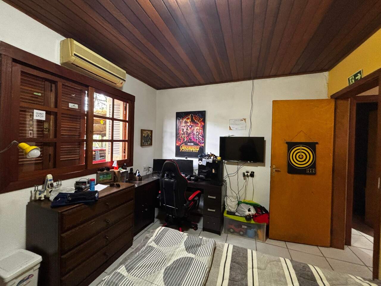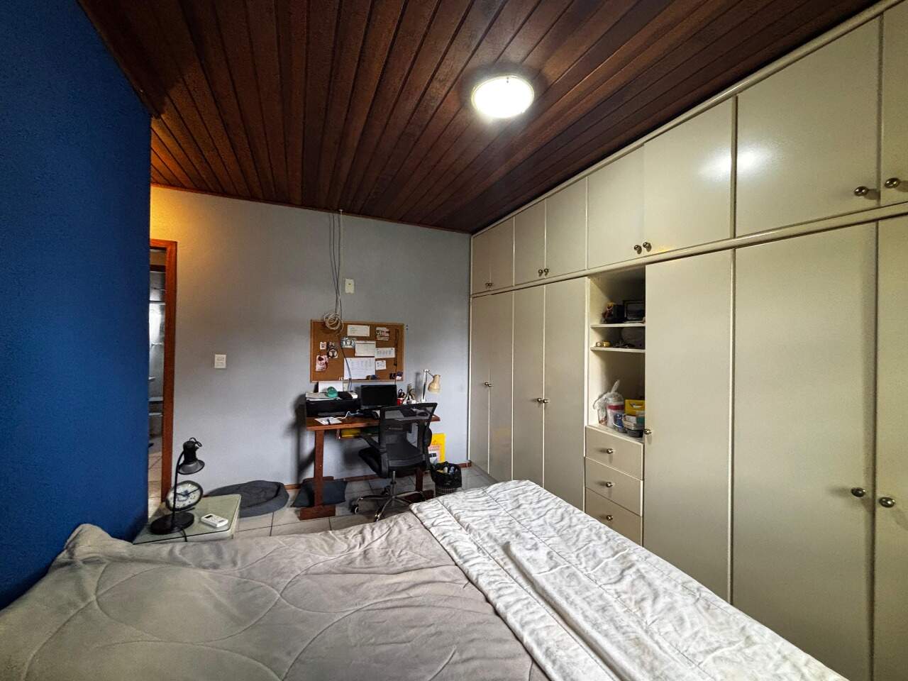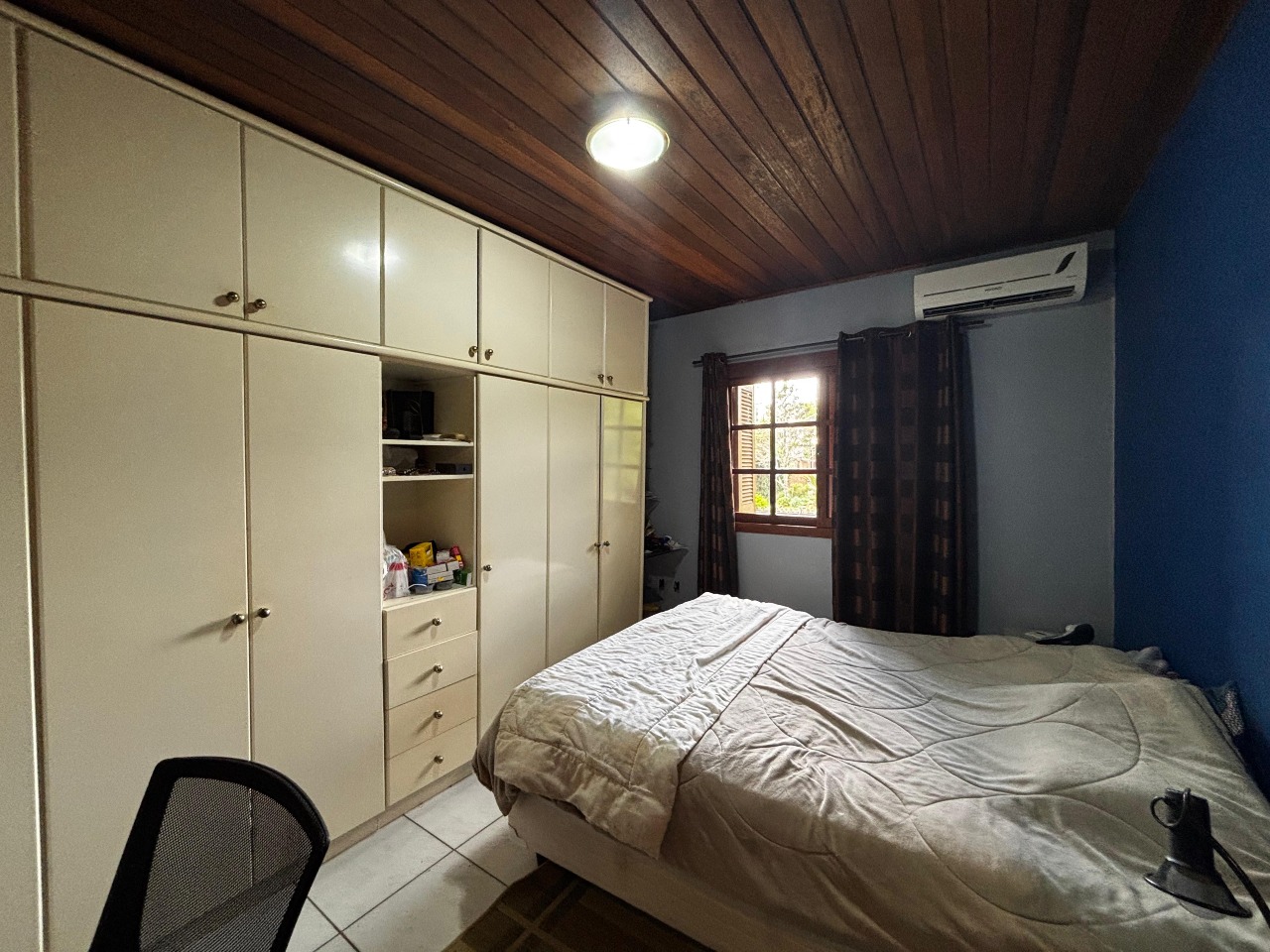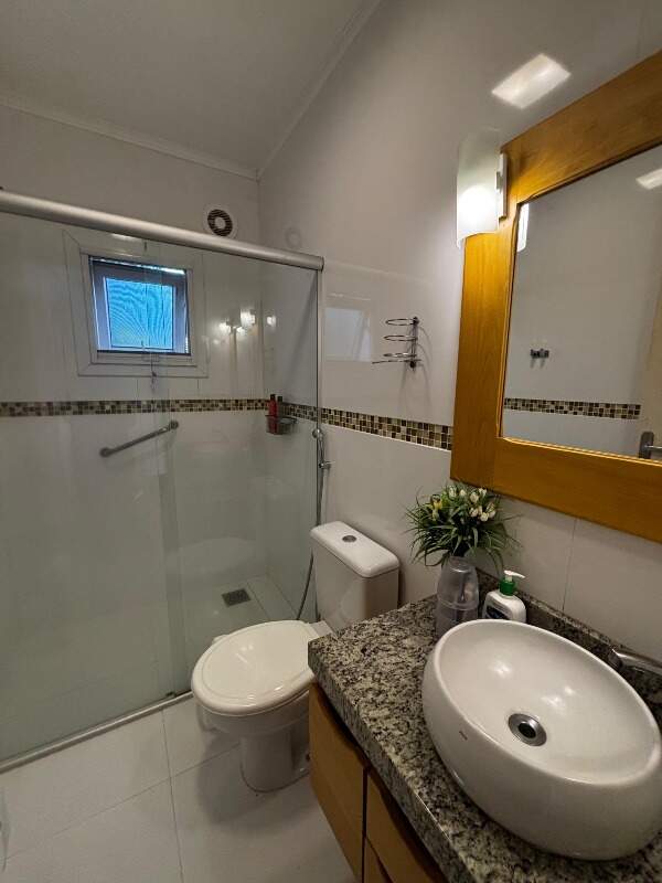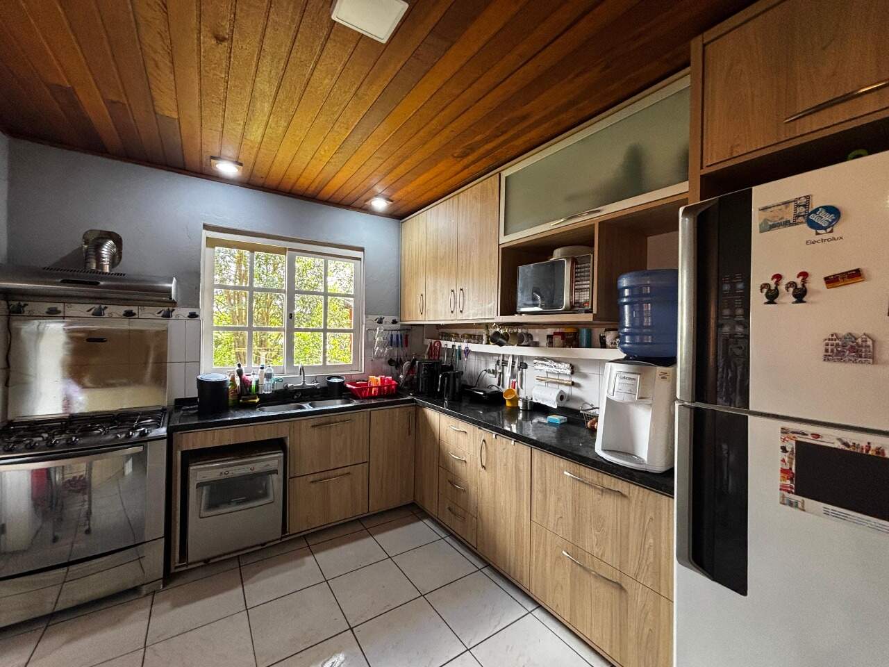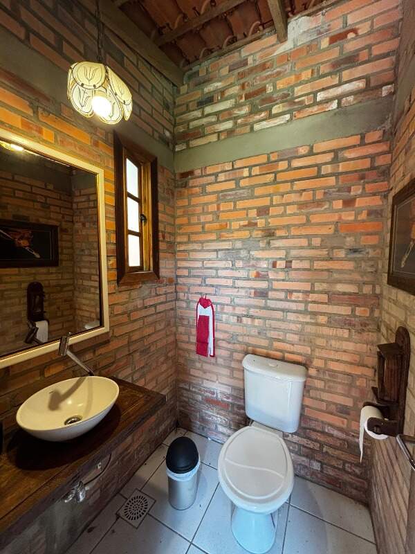 Nos fundos, há um quiosque completo com churrasqueira e lavabo, oficina e uma suíte adicional, que pode ser utilizada como escritório ou espaço para hóspedes. O imóvel dispõe ainda de duas vagas de garagem cobertas.