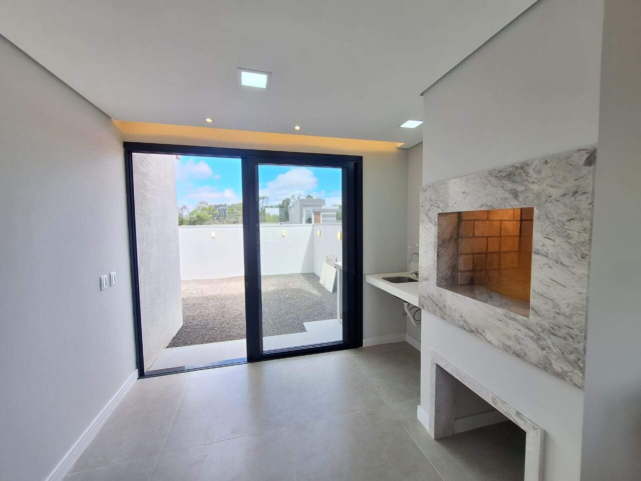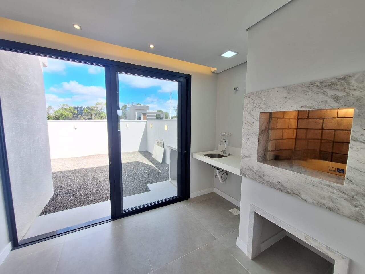Lareira e churrasqueira integradas