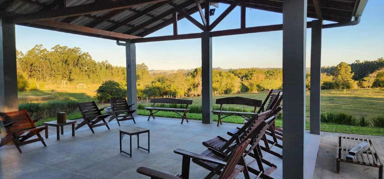 Varanda aberta com vista panorâmica para a natureza — perfeita para relaxar, receber amigos ou apreciar o entardecer