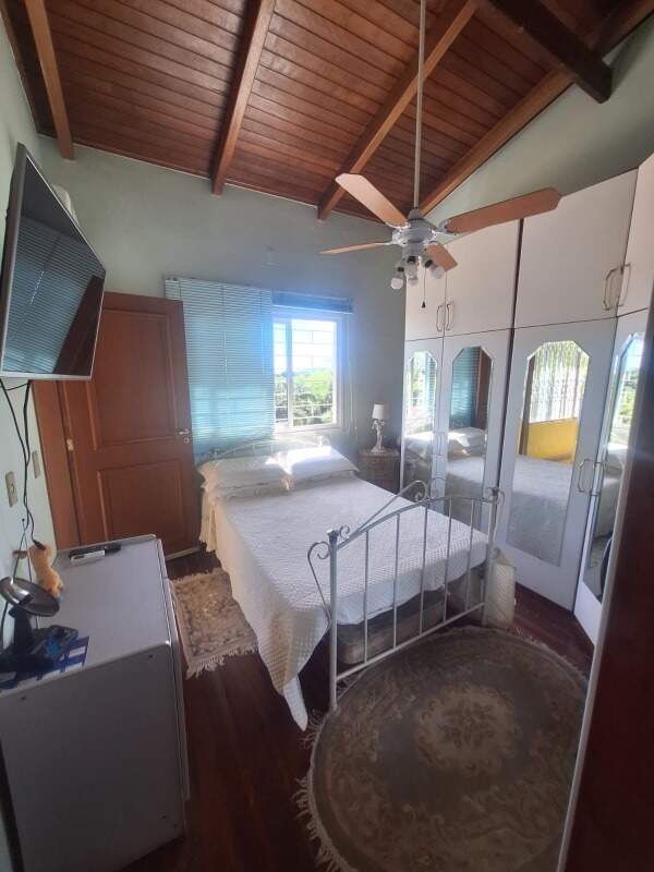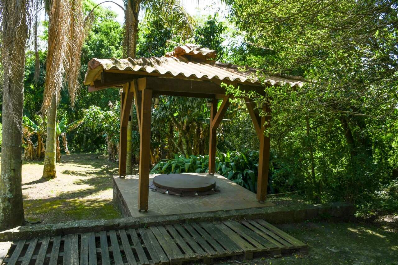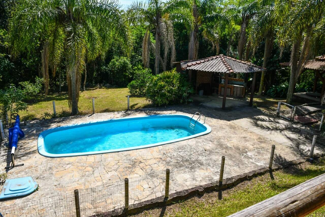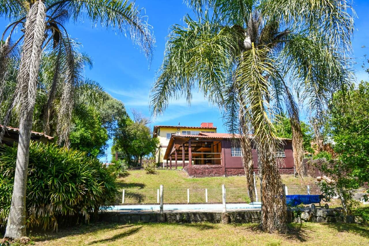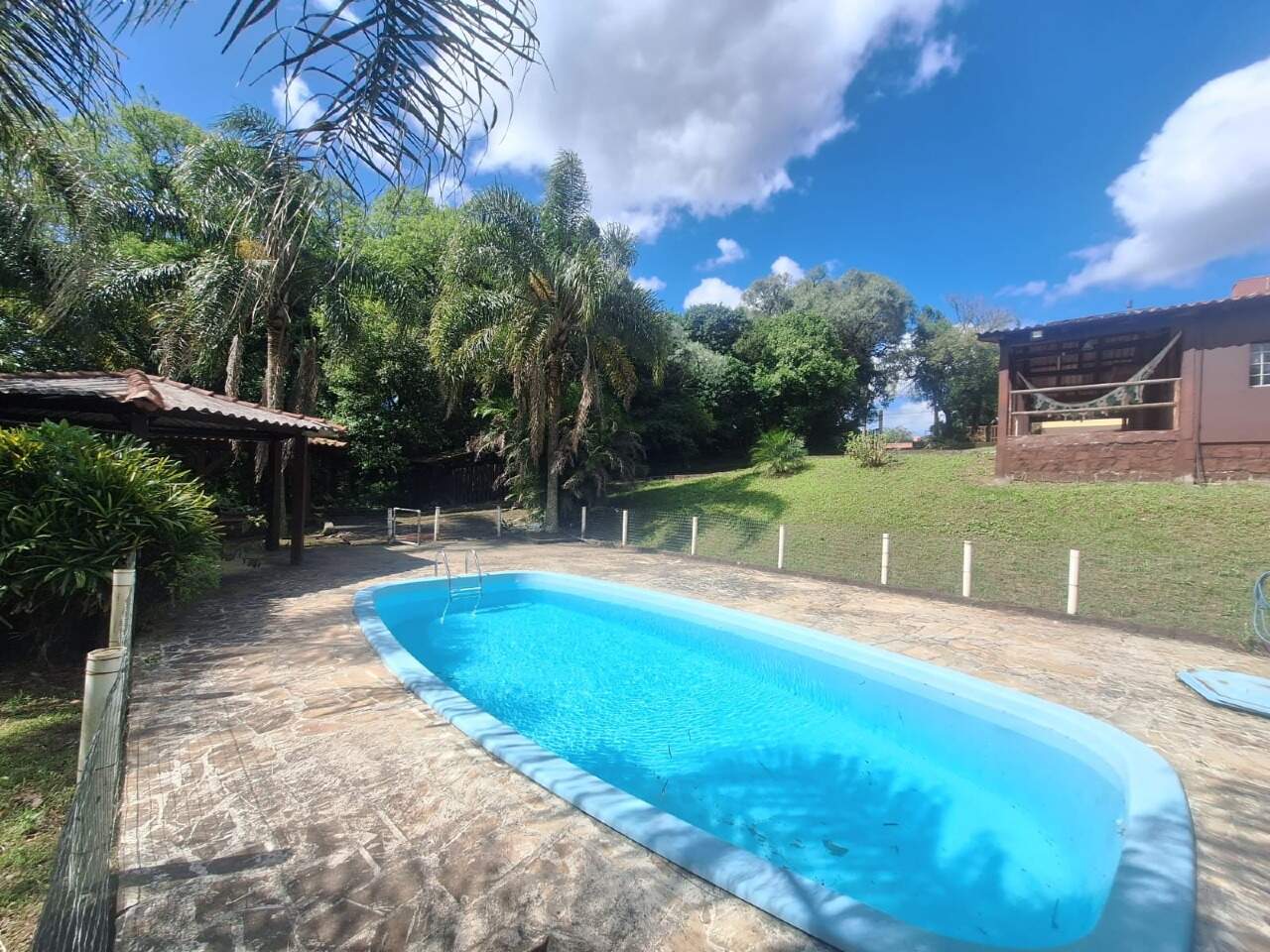 Sítio com quatro edificações residenciais, sendo uma principal de dois pavimentos e as demais térreas. O terreno, com área total de 13.045,57 metros quadrados, possui pavimentação parcial em concreto simples na área de acesso de veículos, piso de basalto irregular na área da piscina e revestimento cerâmico comercial no entorno da edificação principal. As áreas restantes são ajardinadas, proporcionando um ambiente agradável e bem cuidado. A propriedade conta com três dormitórios, dois deles sendo suítes, cinco banheiros, dois lavabos, piscina privativa, pátio espaçoso e terreno amplo, além de capacidade para sete vagas de estacionamento.