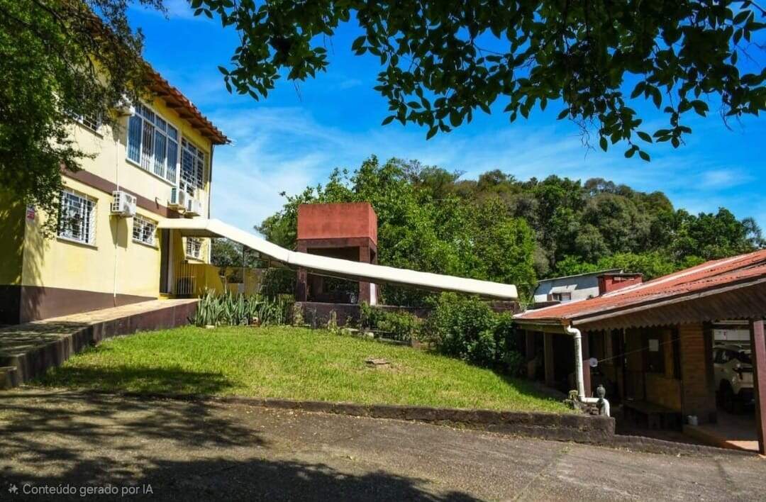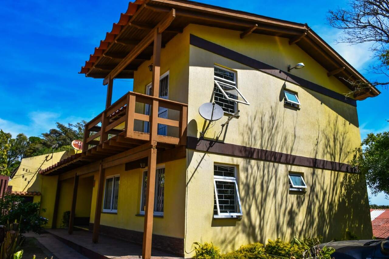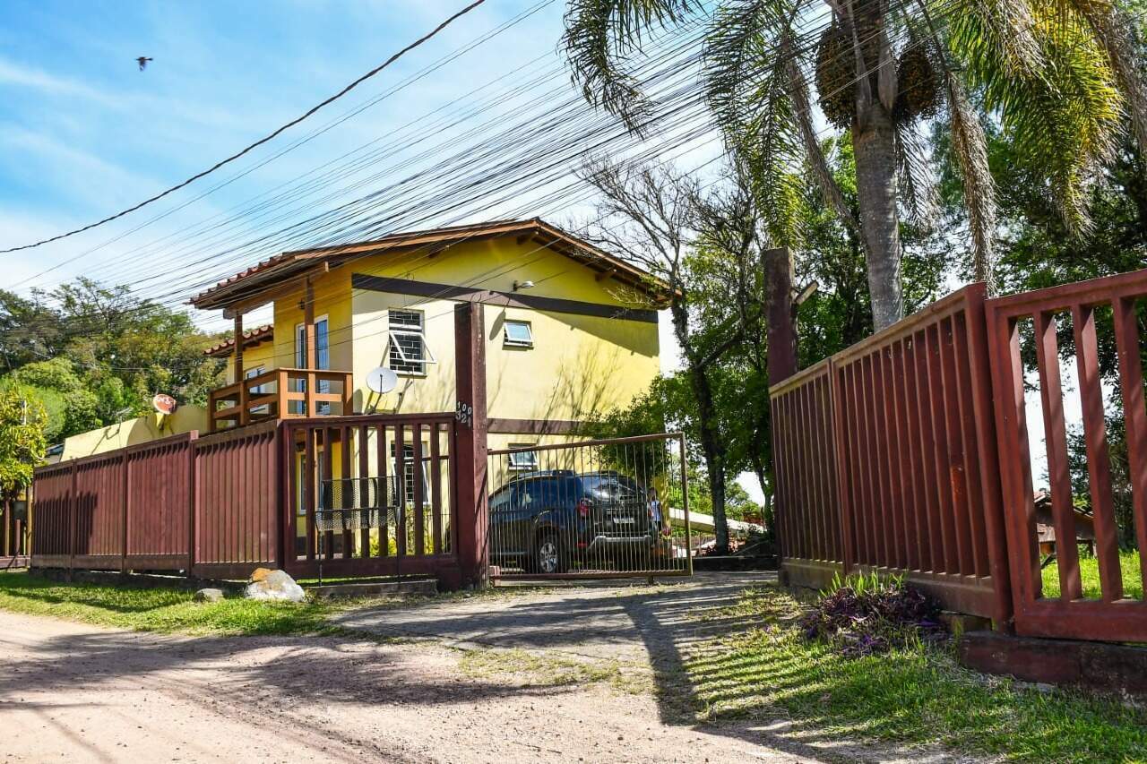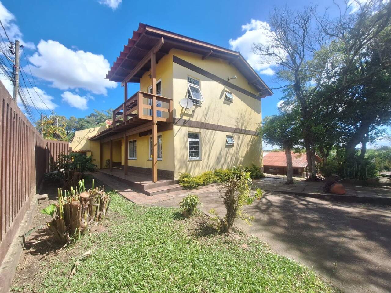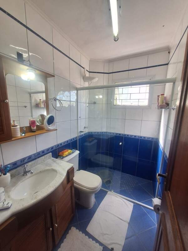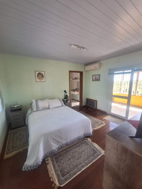 Sítio com quatro edificações residenciais, sendo uma principal de dois pavimentos e as demais térreas. O terreno, com área total de 13.045,57 metros quadrados, possui pavimentação parcial em concreto simples na área de acesso de veículos, piso de basalto irregular na área da piscina e revestimento cerâmico comercial no entorno da edificação principal. As áreas restantes são ajardinadas, proporcionando um ambiente agradável e bem cuidado. A propriedade conta com três dormitórios, dois deles sendo suítes, cinco banheiros, dois lavabos, piscina privativa, pátio espaçoso e terreno amplo, além de capacidade para sete vagas de estacionamento.