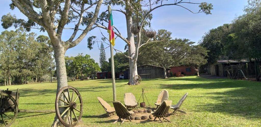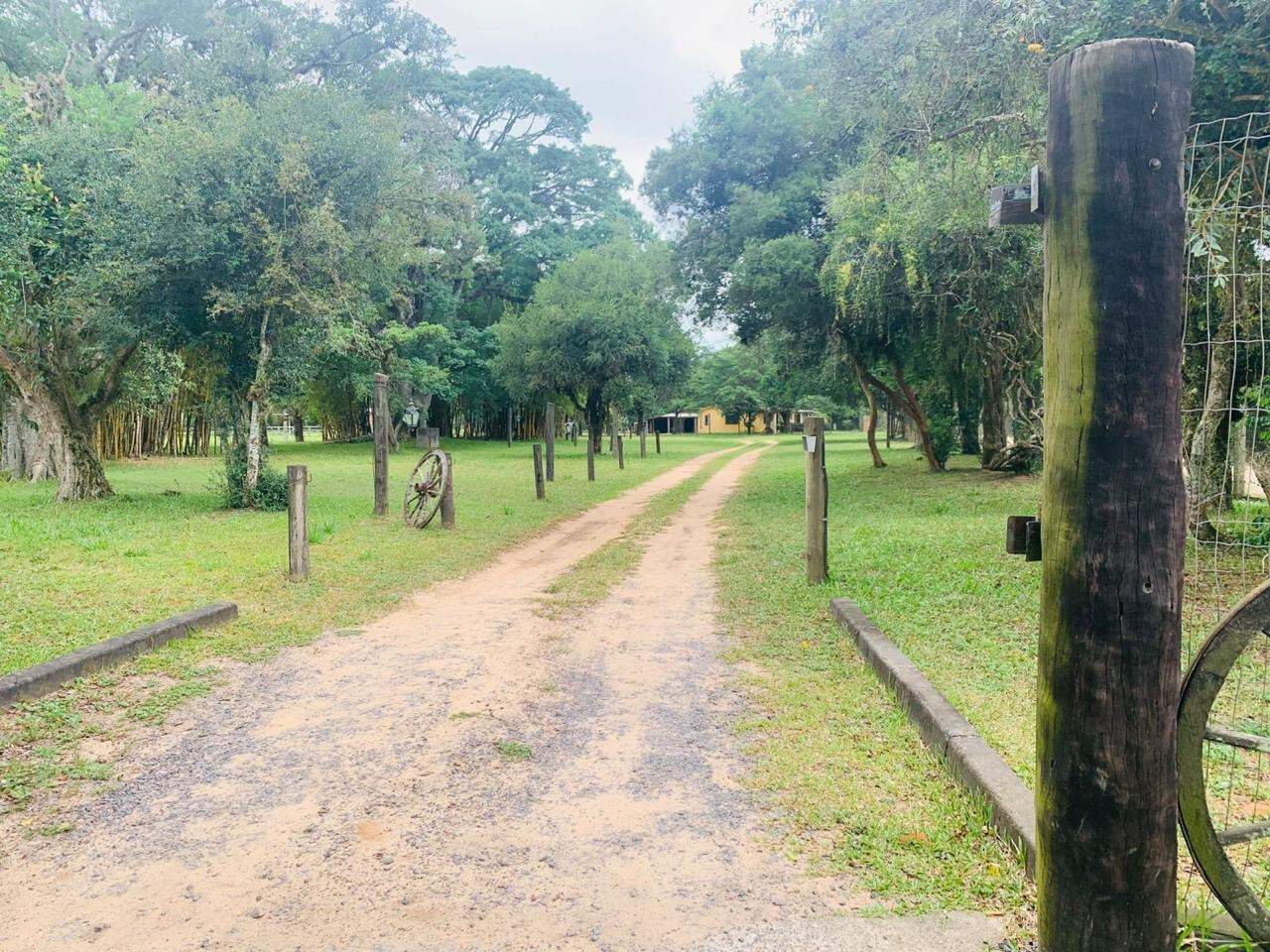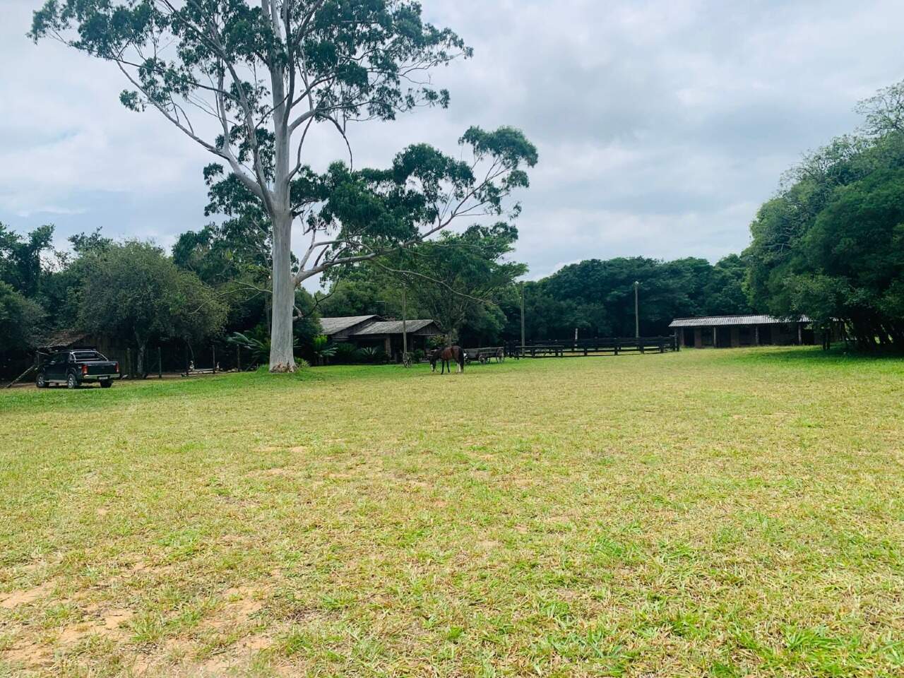Sítio em Águas Claras, Viamão, com 3 hectares de área totalmente plana em localização privilegiada, arborizado e telado em toda extensão. Estrada vicinal principal regada diariamente, acesso a transporte escolar gratuito, mercados e escola próximos. Poço artesiano com água potável e fácil acesso para entregas e transporte por aplicativo. A propriedade inclui casa principal com 3 quartos, sala e cozinha conjugadas, banheiro, área de serviço e garagem. Possui galpão de pedra com 140 m², banheiro e ampla área de lazer. Conta ainda com 4 cocheiras de pedra, redondel para cavalo, galinheiro, chiqueiro para 2 porcos e ambiente externo com churrasqueiras.